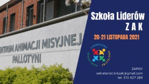 Wielkimi krokami zbliża się szkoła liderów Zjednoczenia Apostolstwa Katolickiego, która będzie miała miejsce 20-21 listopada 2021 w Centrum Animacji Misyjnej w Konstancinie Jeziornie. Zapisy : sekretariat.krkzak@gmail.com , tel. 513 427 289